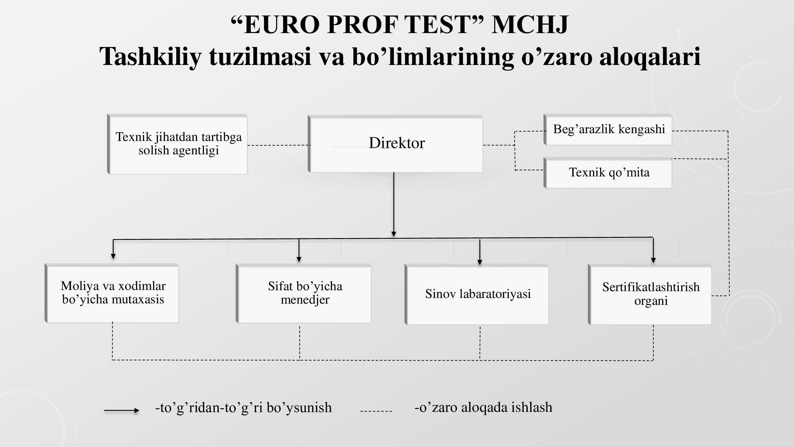 "EURO PROF TEST" MCHJ tashkiliy tuzilmasi